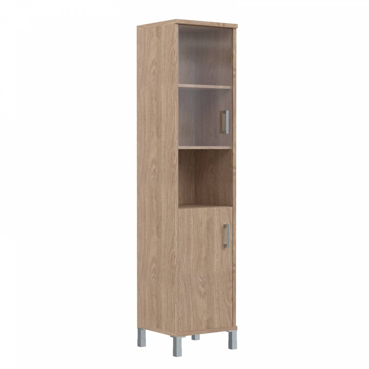 Шкаф-колонка высокая с малой стеклянной дверью и глухой B 431.10(L) Дуб Девон 475х450х2054