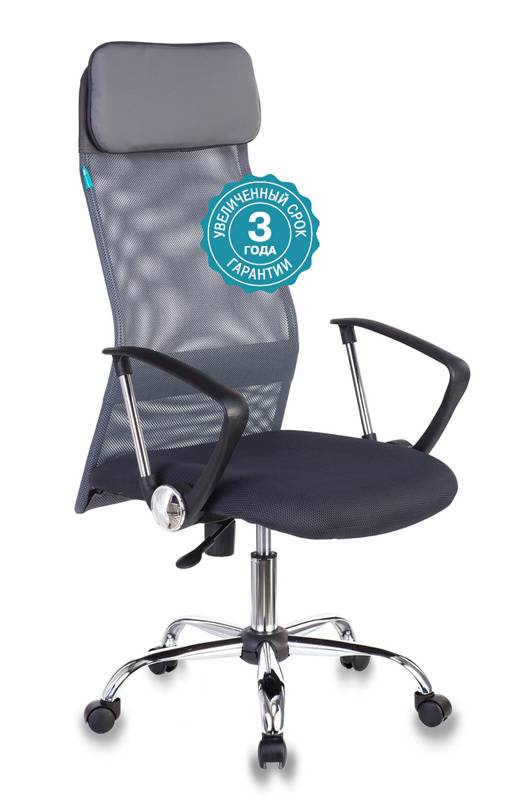 • Кресло руководителя Бюрократ KB-6N/SL/DG/TW-12 серый TW-04 TW-12 сетка крестовина хром